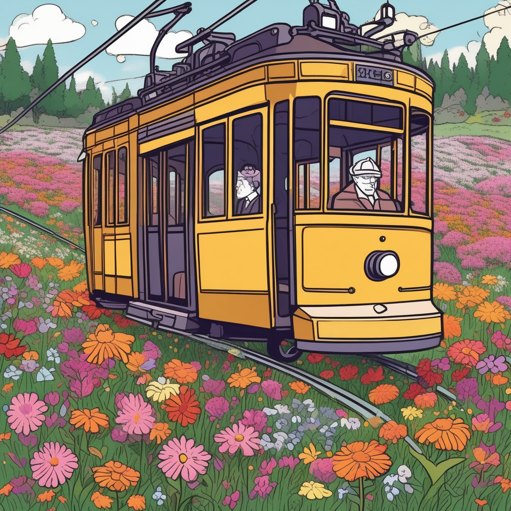 The tram tramples all the grass and flowers!