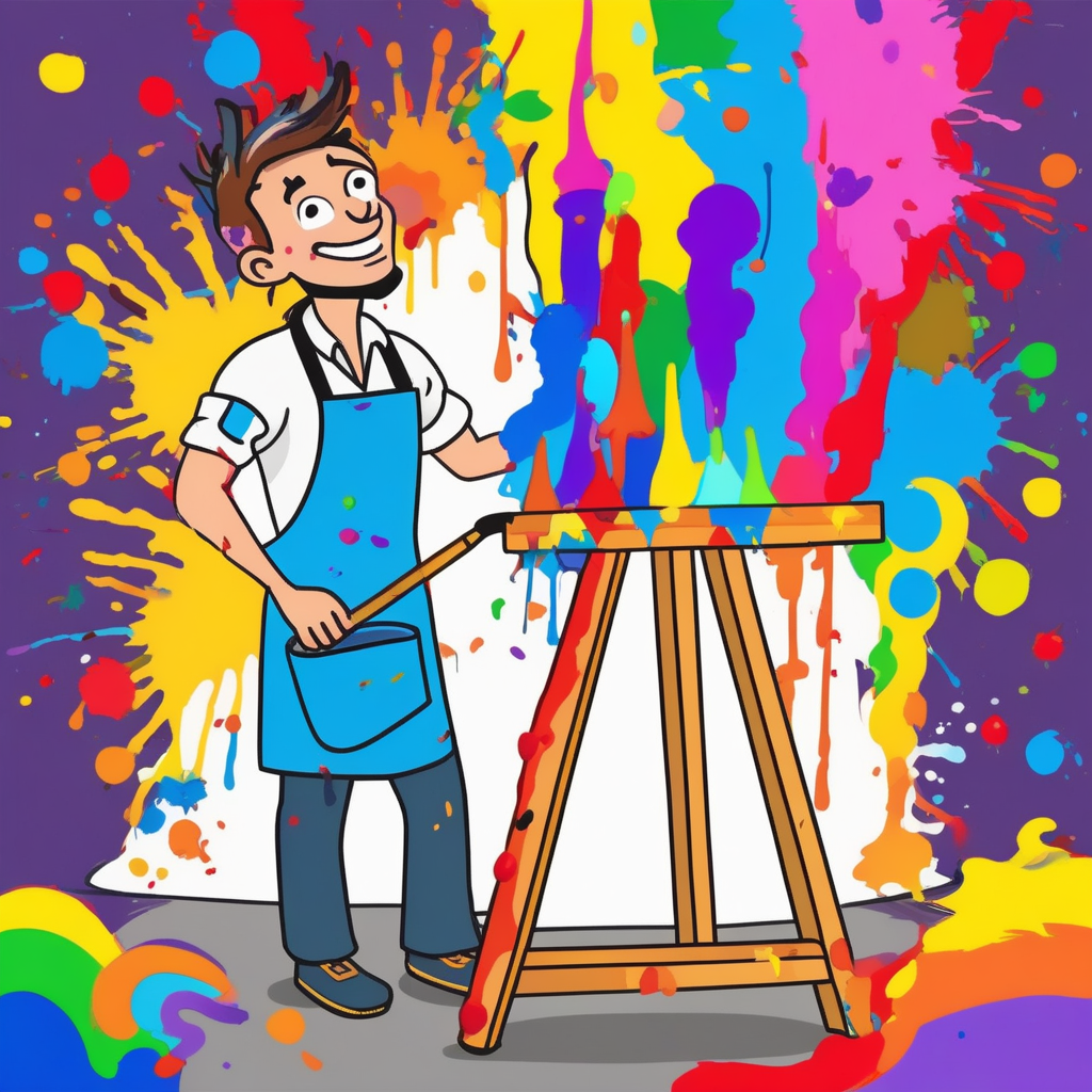 Paint-bursting painter! The colors explode everywhere!