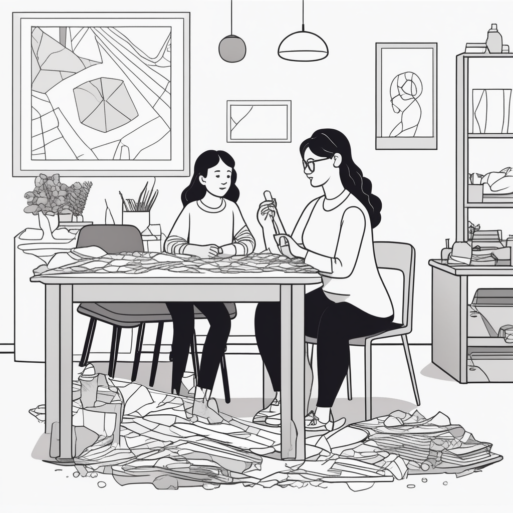 그녀는 실수로 자신의 손을 콜라주 작품에 붙여버려서 보건실에 가야 했다.