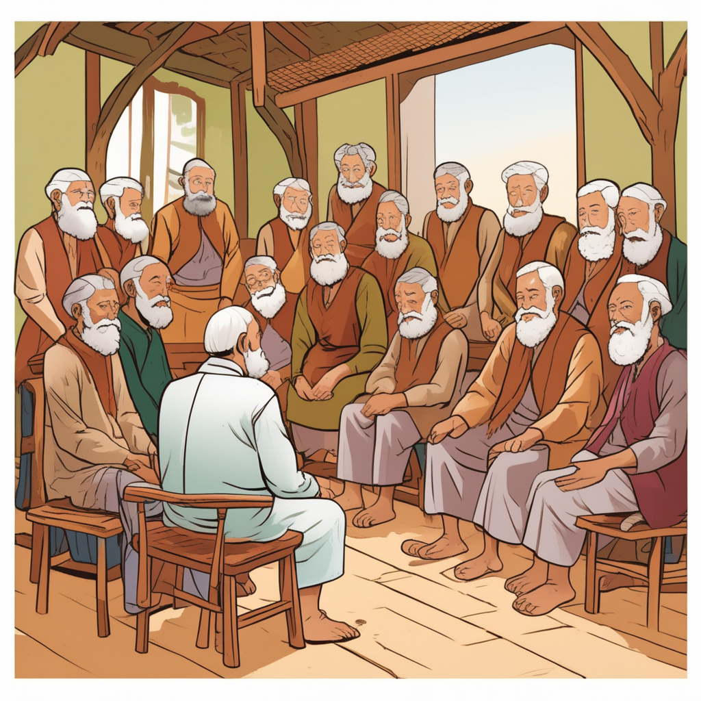 부족 원로들이 중요한 의식을 논의하기 위해 모였다.