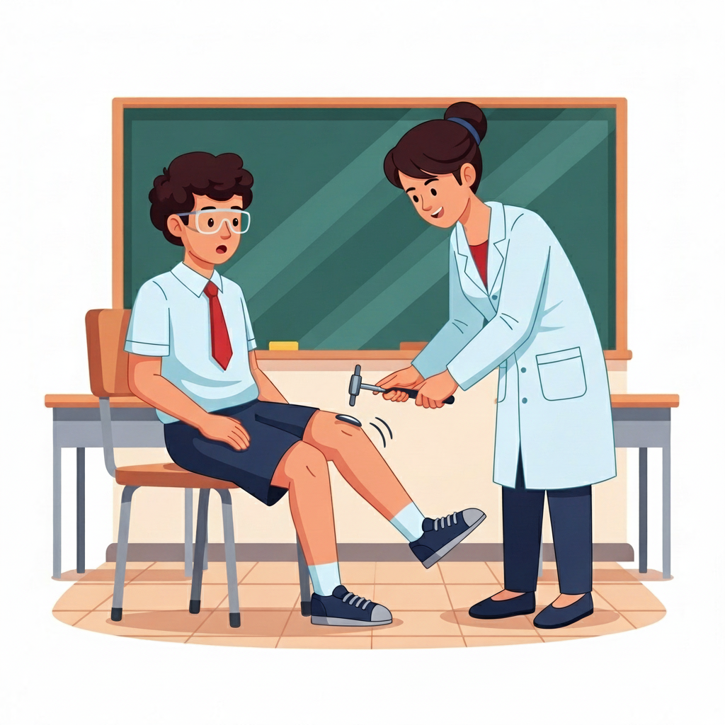 무릎을 두드리는 자극이 즉각적인 반응을 일으킨다.
