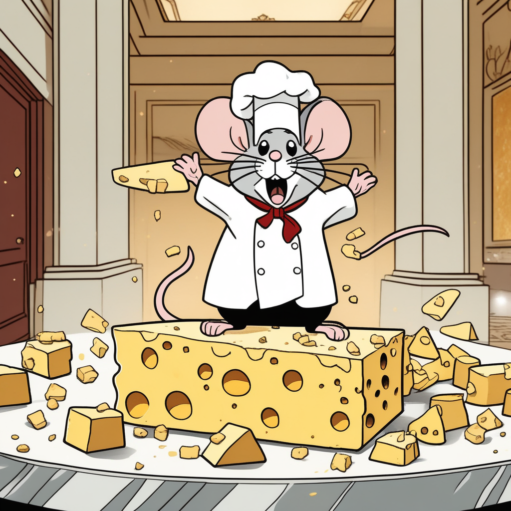 A mouse throwing cheese in the lobby - that's a rodent with gnawing teeth!
