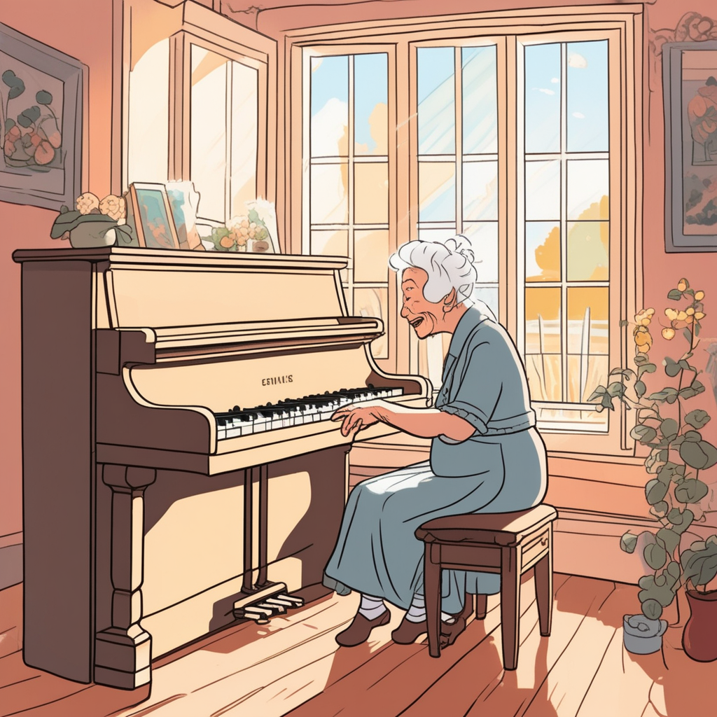 Rehearsing melodies while nursing dreams in her golden years