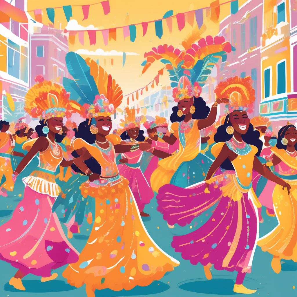 "The Brazilian carnival is celebrated with samba music and elaborate costumes."