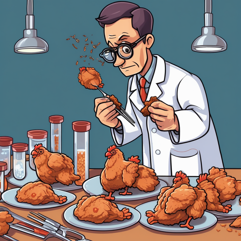 A person (인) measuring chicken (치) inch by inch with scientific precision!