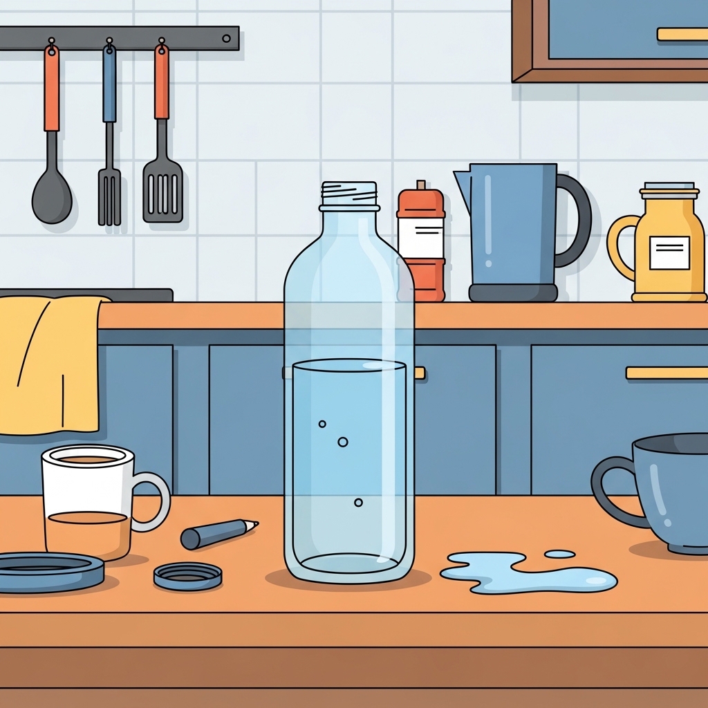 병은 물을 담고 있으며 밖으로 흘러나오지 않게 막는다.