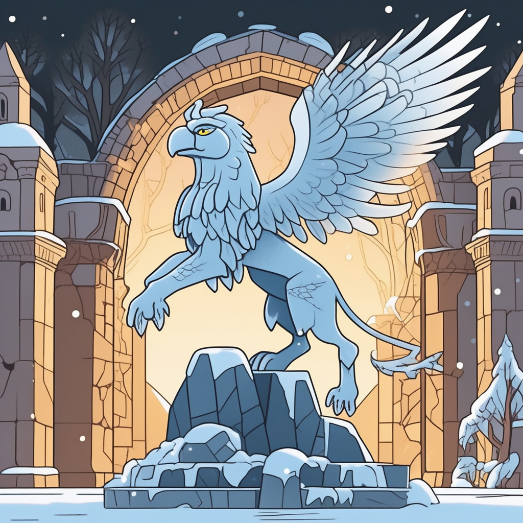 The stone griffen starts to stiffen in the frost!