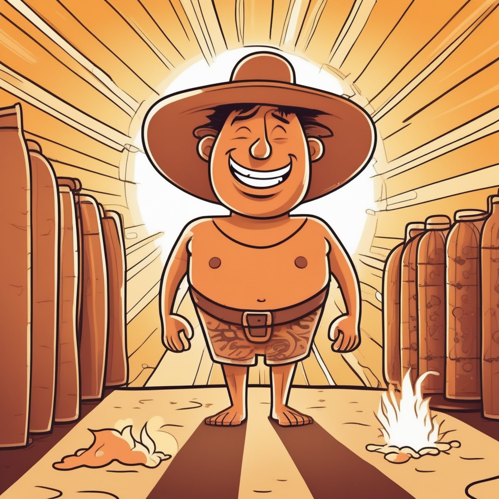 Under the sun, a person does leather tanning instead of getting a suntan! Real tanning work!