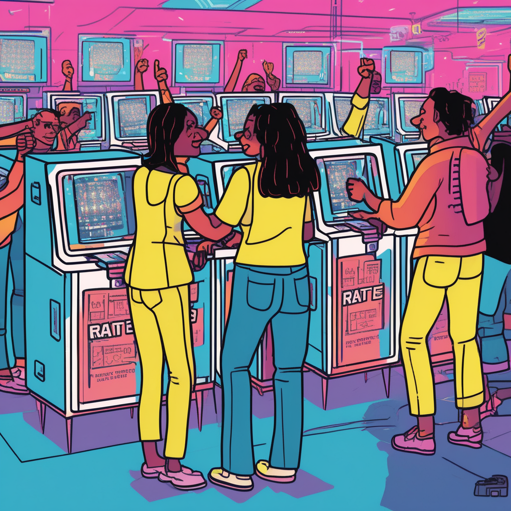 ELEC-touch! The electorate happily touching electric voting machines!