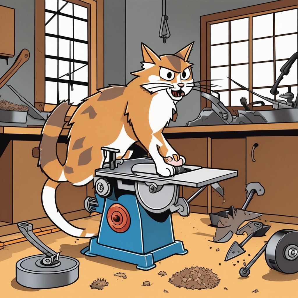 A curious paw meets a dangerous saw!