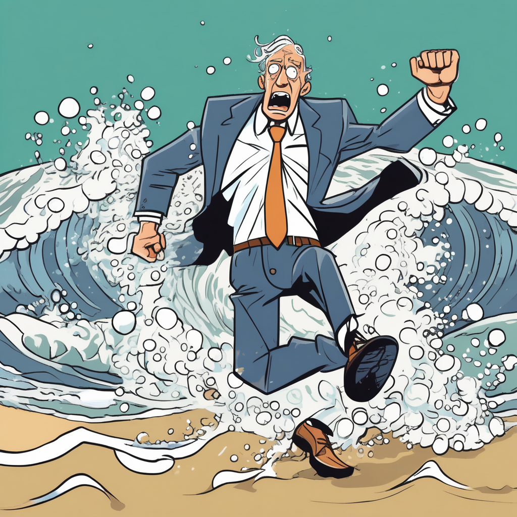 "The surfer waited patiently for the perfect tide, but ended up waiting so long he fell asleep on his board."