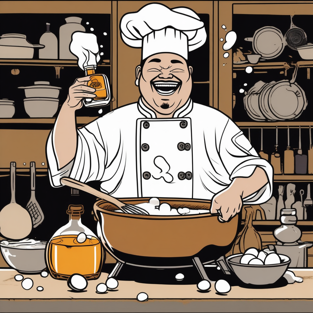 The whiskey-drunk chef whisks eggs energetically with his whisk!