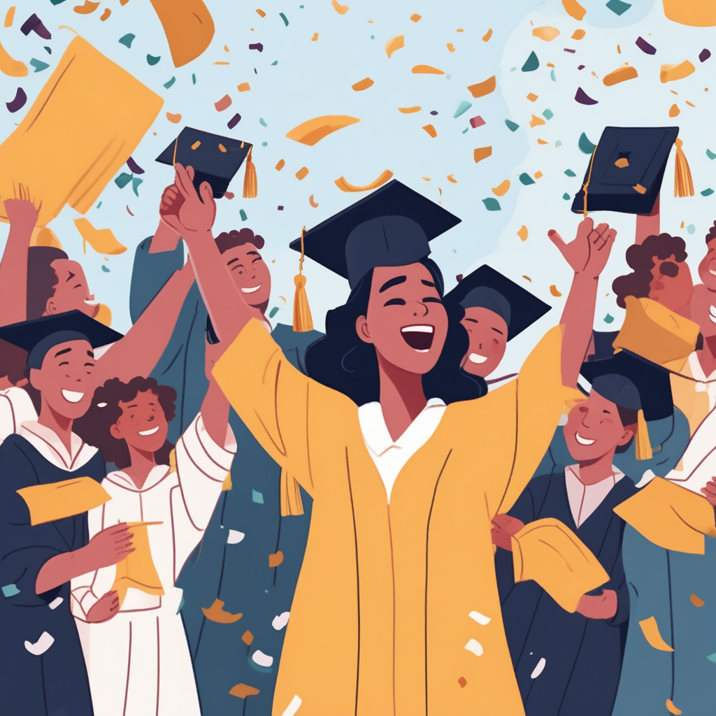 그래쥬에이션을 '그래, 쥬스 마시며 기뻐하자!'로 기억하고, 세러모니를 '세상에 러브 모든이'로 연상해보세요. 졸업식에서 모든 사람이 기뻐하며 축하하는 모습을 떠올리면 됩니다.