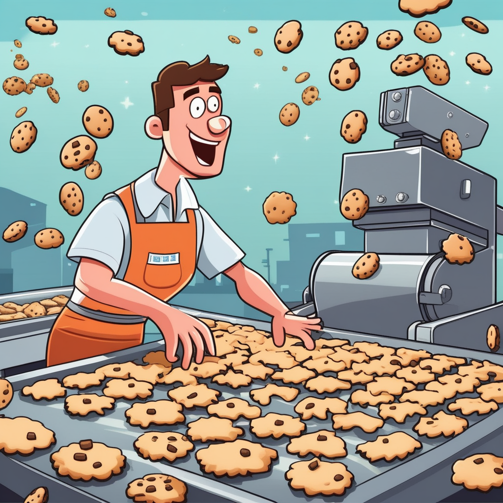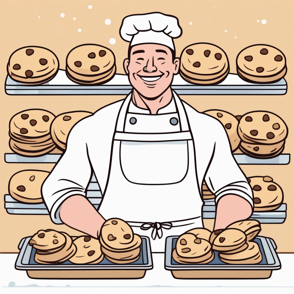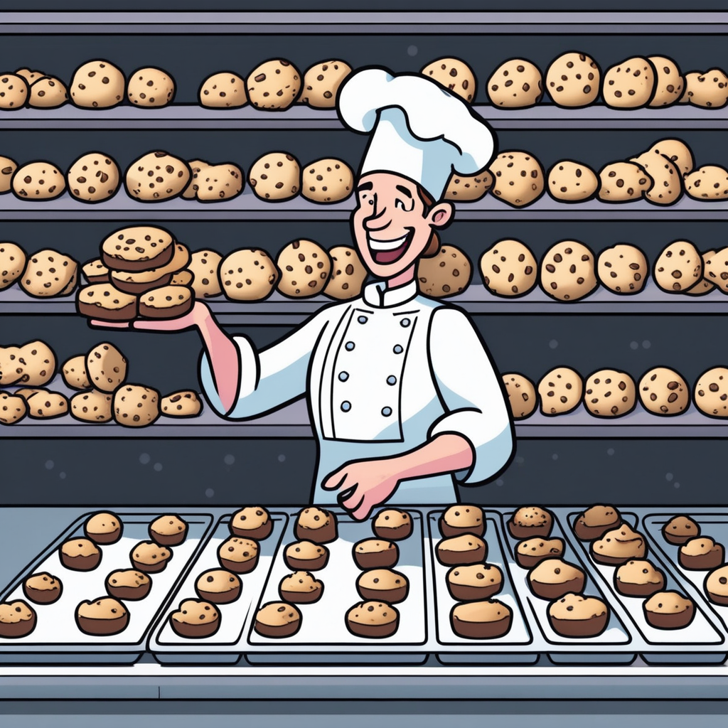 Baker positioning each batch of cookies: 'This batch here, that batch there!'