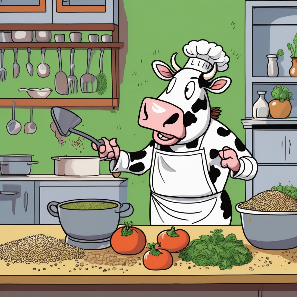 Herb grinding, barley eating! A healthy meal from our herbivore chef!