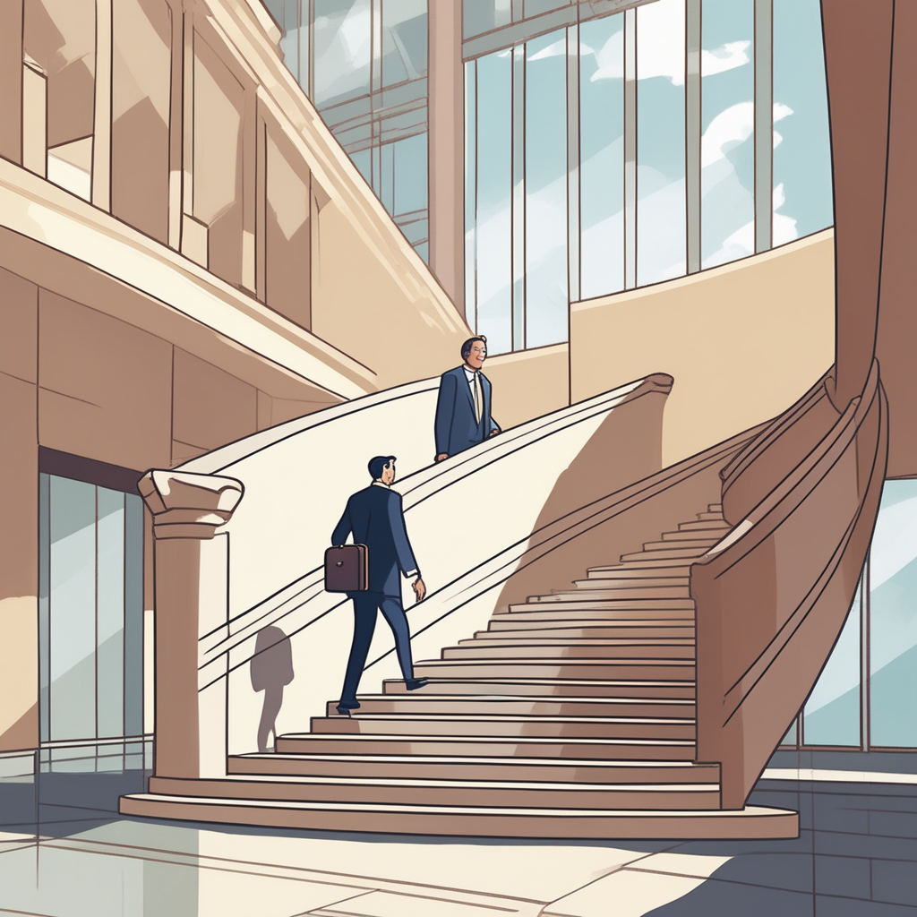 여행가방과 서류가방, 계단을 오르며 성공을 향해!