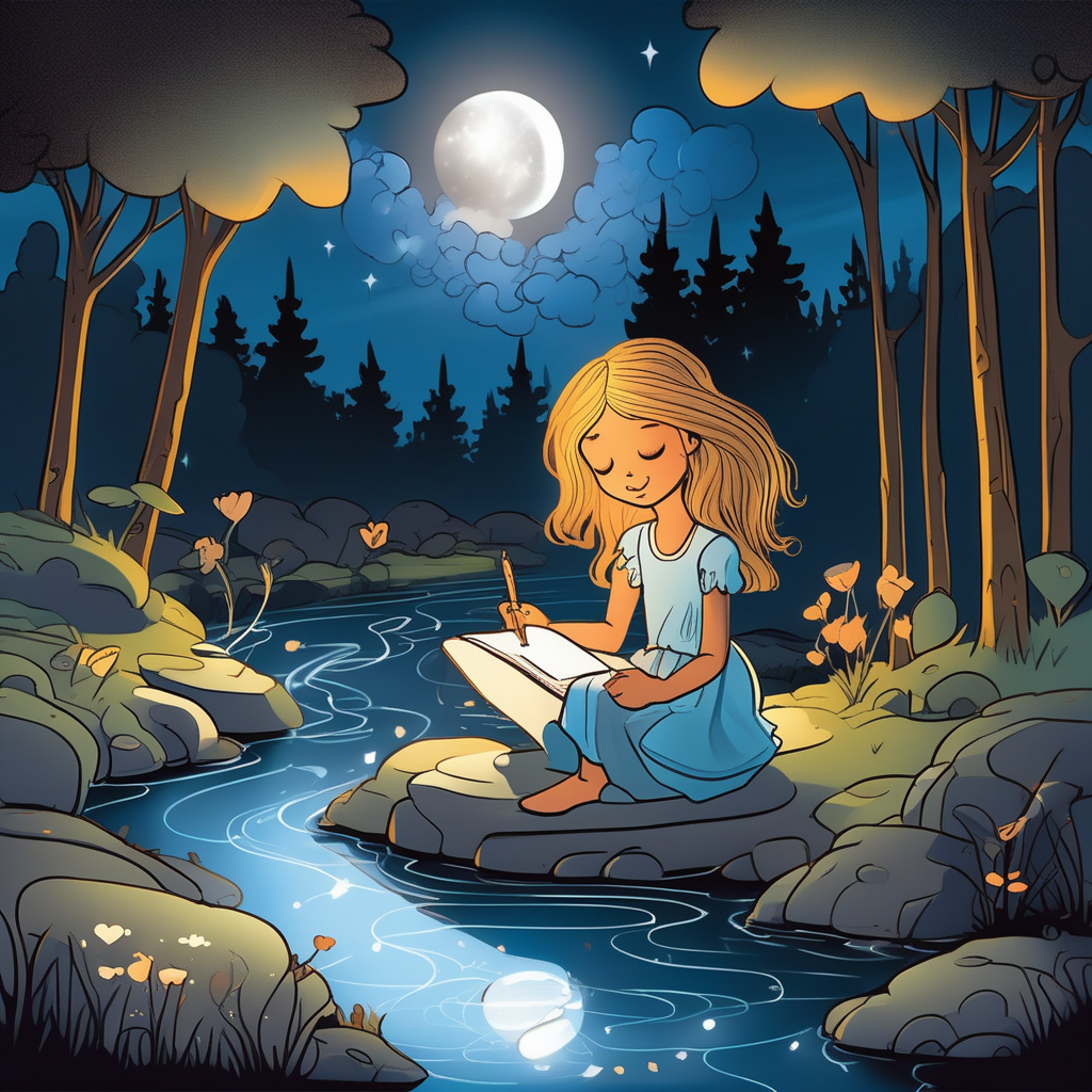 A golden beam lights up her dream by the flowing stream!