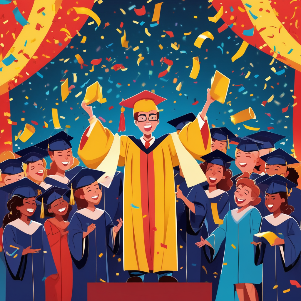 4년간의 에너지 드링크와 밤샘 공부 끝에, 제이크는 우등으로 졸업할 수 있었다.