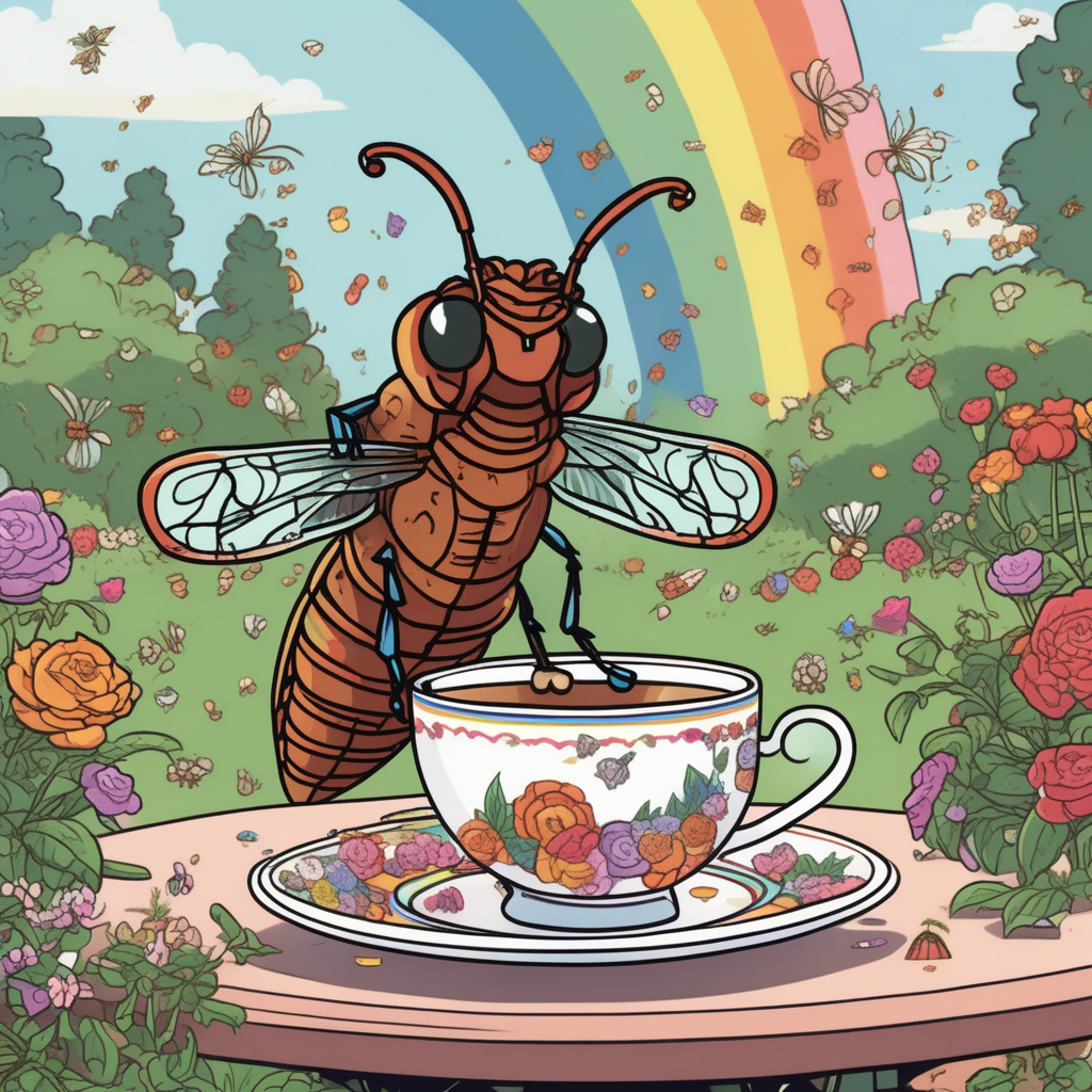 Colorful cicada's tea time becomes a calamity from sudden typhoon!