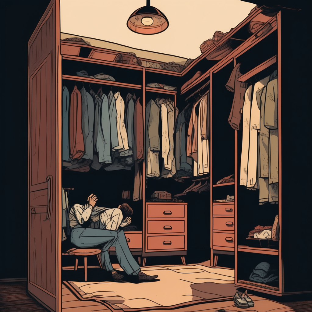 Classic hideout discovered! A secret base inside the closet, hiding with the clothes!