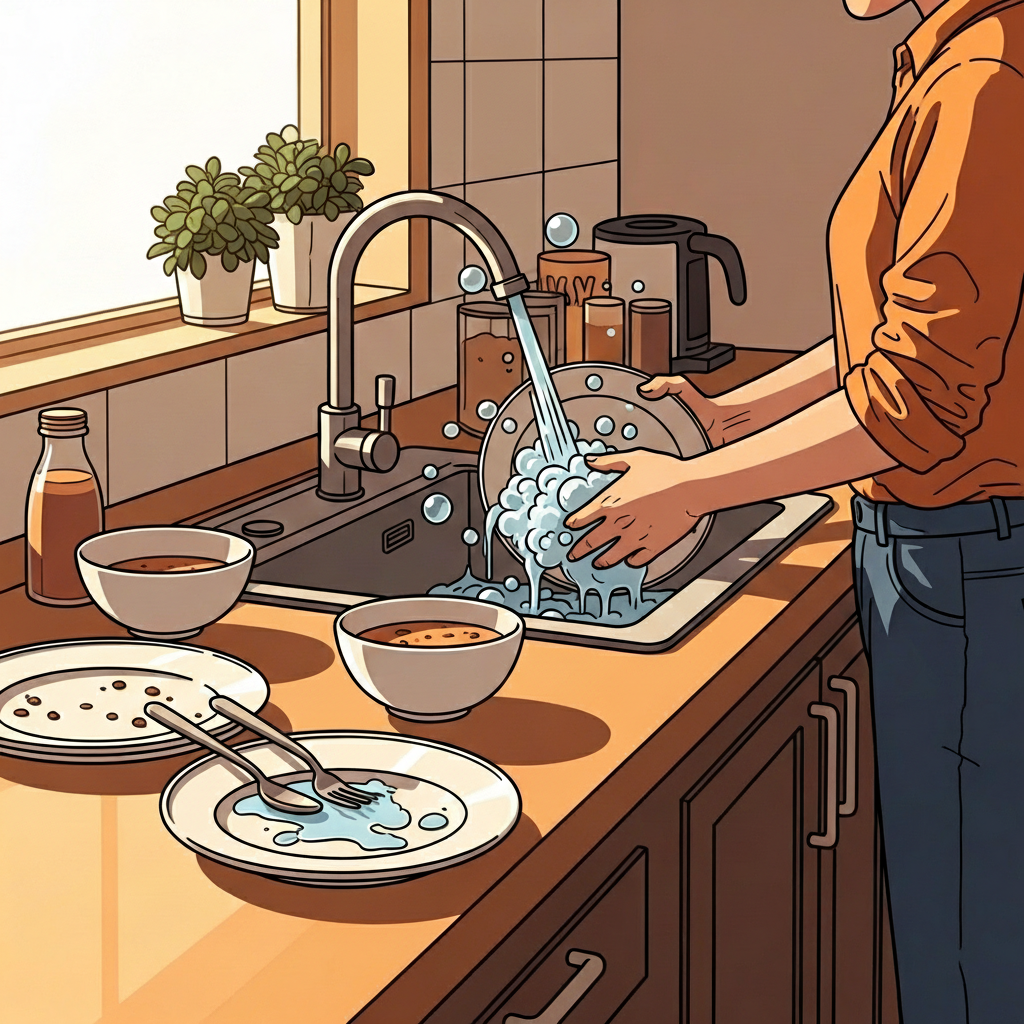 그들은 저녁을 즐겼고, afterward 설거지를 했다.