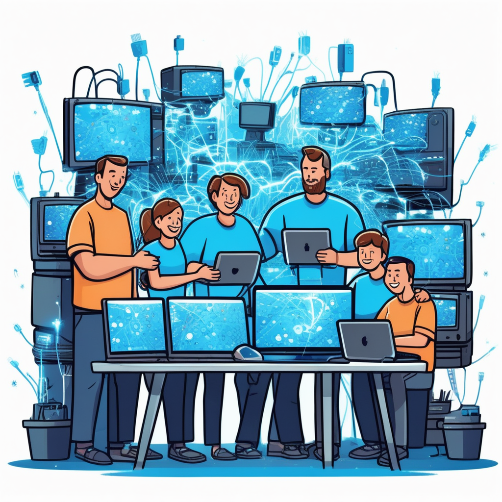 '컴패터블'에서 '컴퓨터 패밀리가 터치해서 블루투스 연결'을 연상하세요. 컴퓨터 가족들이 서로 터치하면서 호환되어 연결되는 모습을 떠올리면 '호환되는, 양립할 수 있는'이라는 뜻을 쉽게 기억할 수 있습니다.