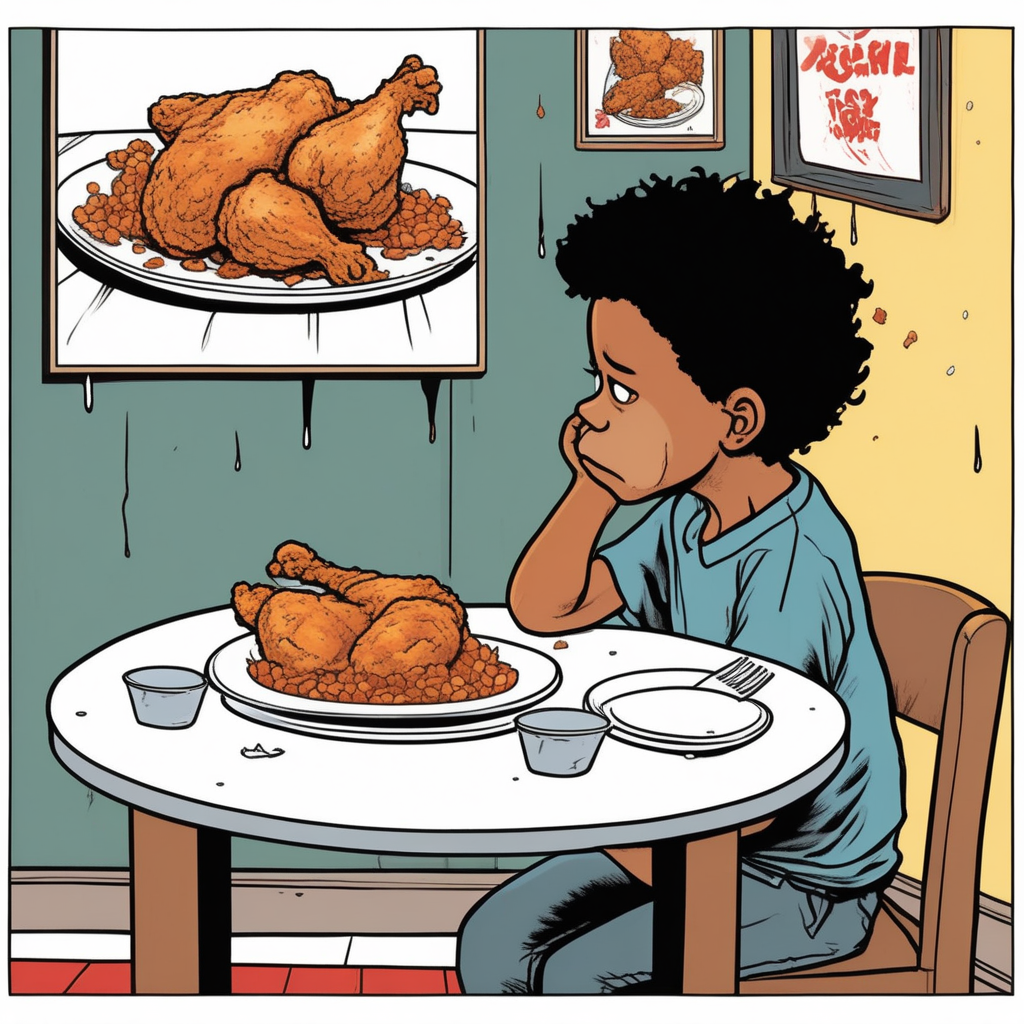 The fried chicken was taken away! A deprived child's sad dinner