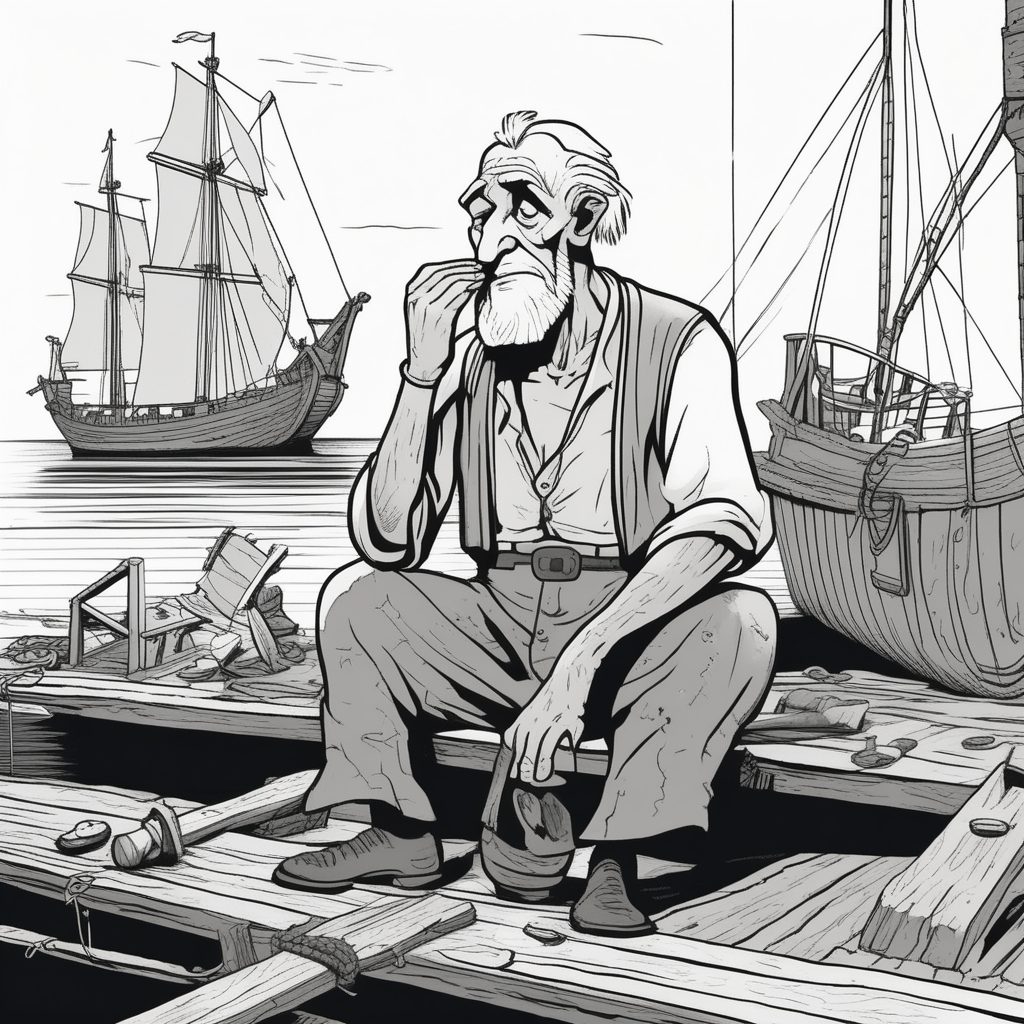 돛을 고치며 못을 박고, 모험담을 들려주네!
