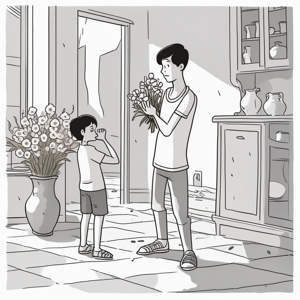 "After eating his roommate's leftover pizza, Jake looked so contrite that his friend couldn't stay mad."