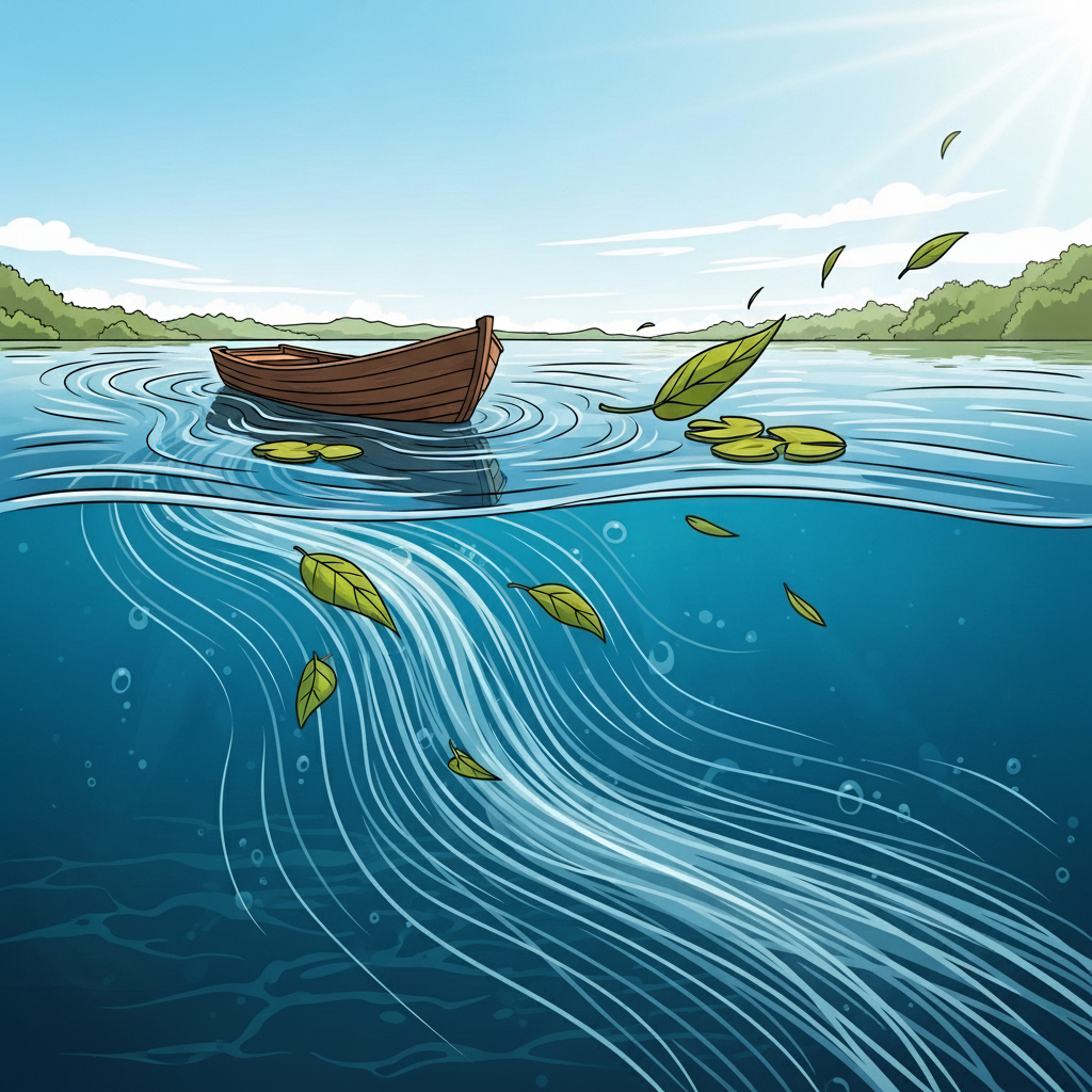 수면 아래의 흐름이 배를 밀어간다.