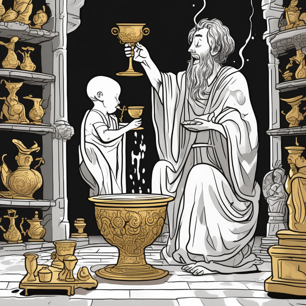 라이! 베이비! 이건 우유라고 거짓말하며 신에게 바칠 제주를 따르는 중!