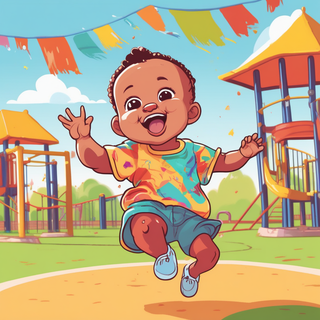 Vivid baby in shirts running vivaciously!