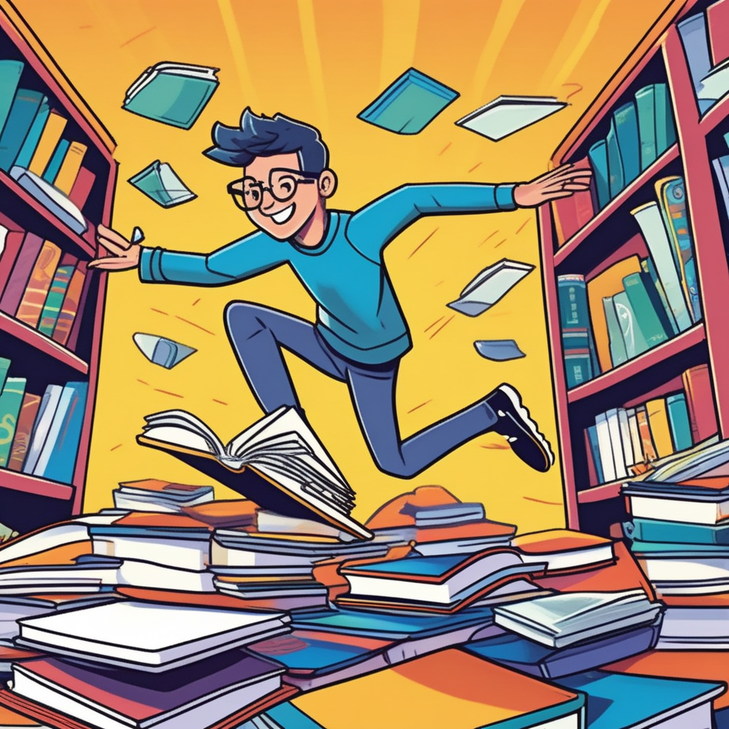 퍼져있는 책들 사이로 슈욱! 지식을 추구하며 달려간다!