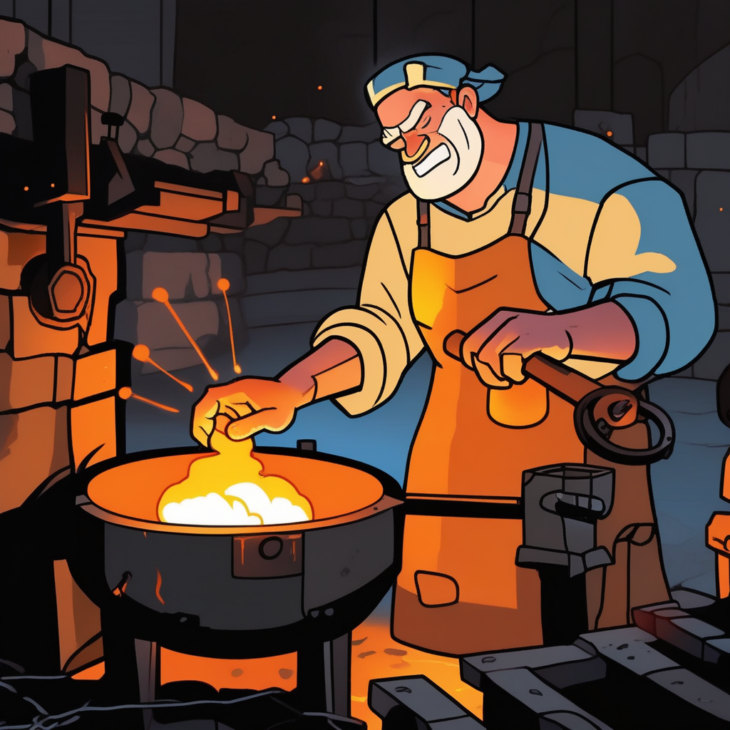 용광로 속 녹는 금속, 튀는 불꽃이 선명하다!