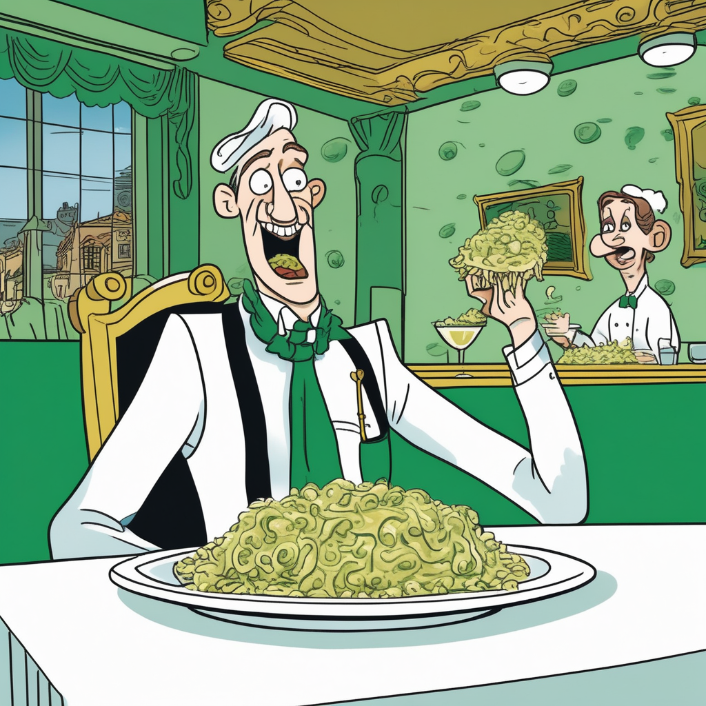 그의 메스꺼운 표정은 햄버거 3개를 먹지 말았어야 했다는 것을 시사했다.