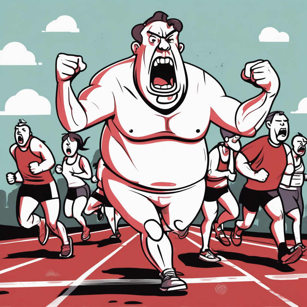 Belly lost the race - now he's ready to fight! (Belligerence = aggressive behavior)