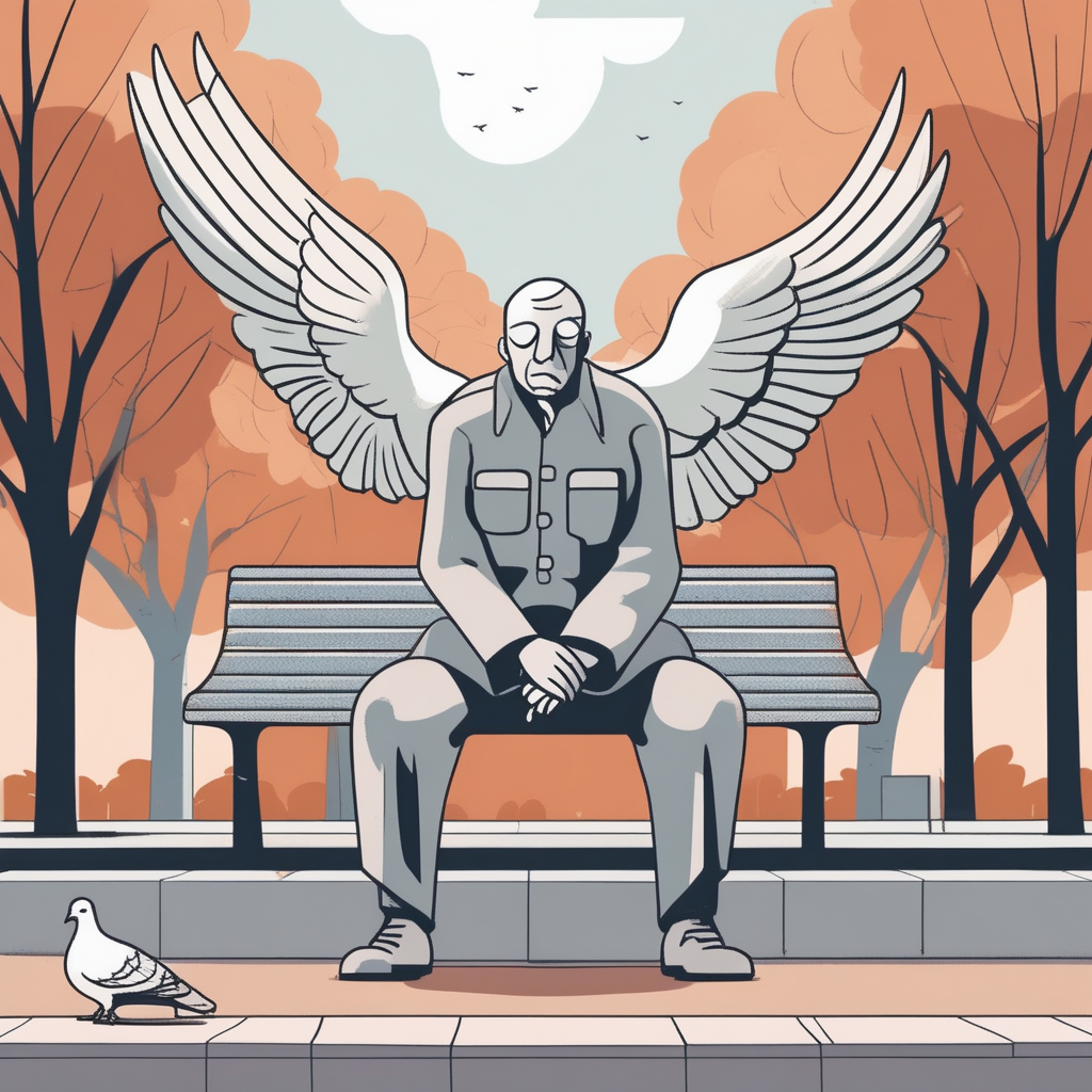 Peace stands symbolically above, while suffering chronically remains below, ironically