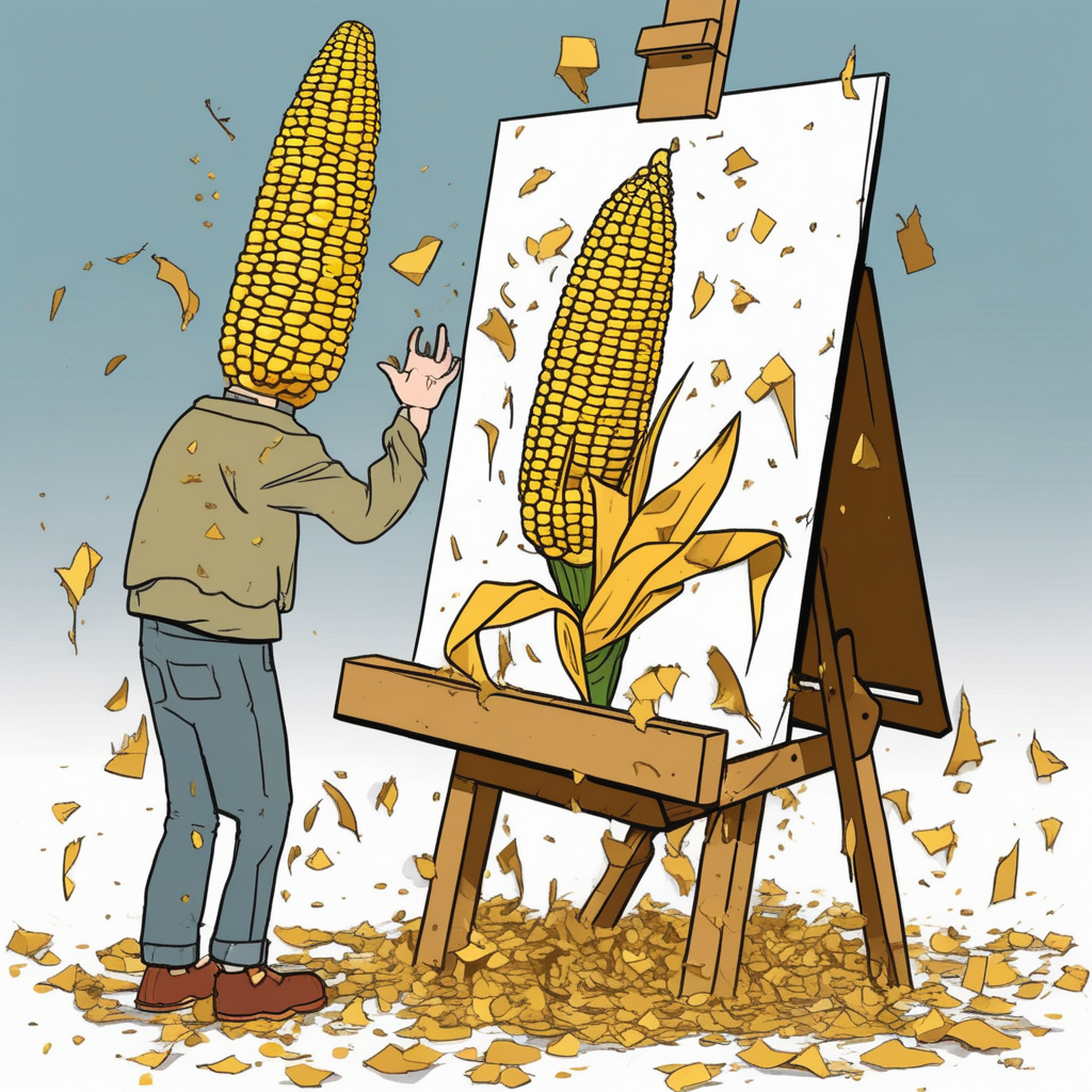 허술하게 그린 옥수수 그림이 껍질처럼 벗겨져 날아간다! 허스크!