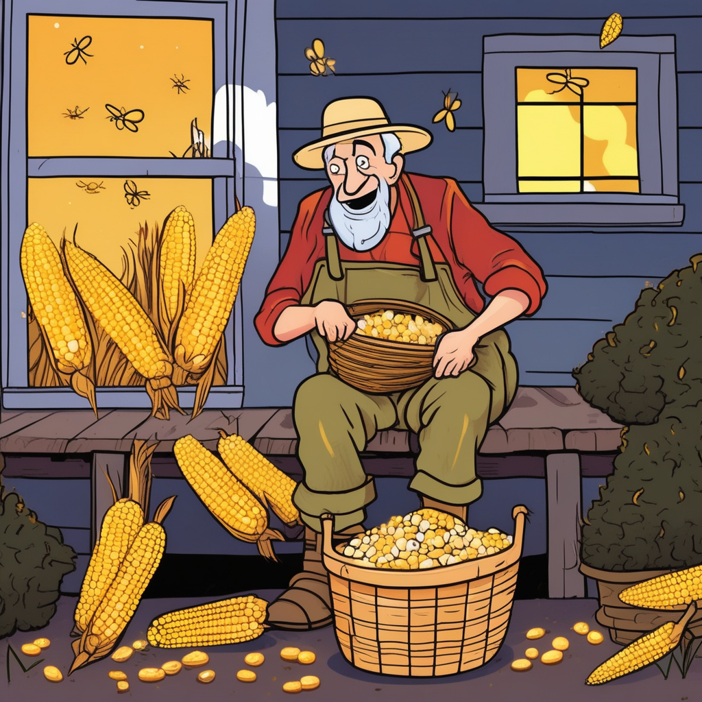 해질녘 향기 속에서, 옥수수 껍질을 벗기네