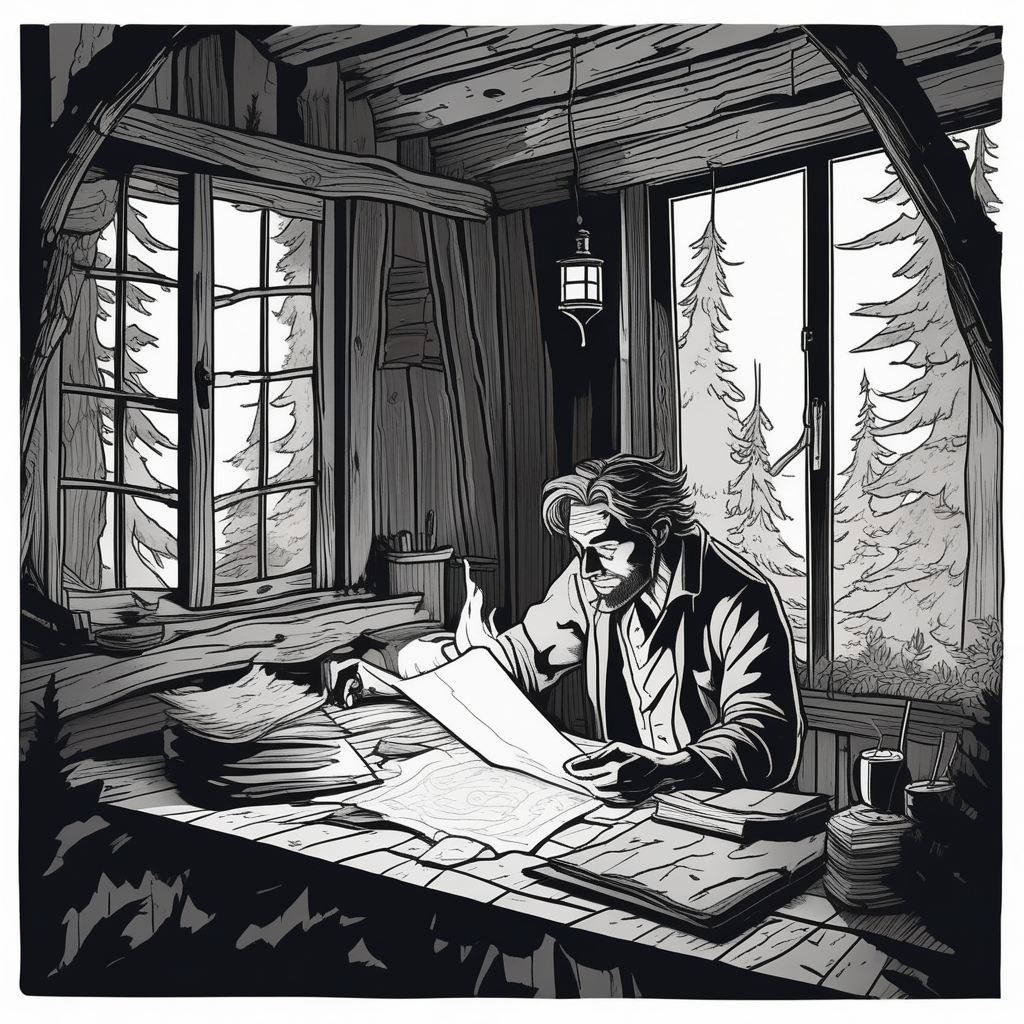 그 유명한 작가는 소설을 끝내기 위해 오두막에 틀어박혔다.