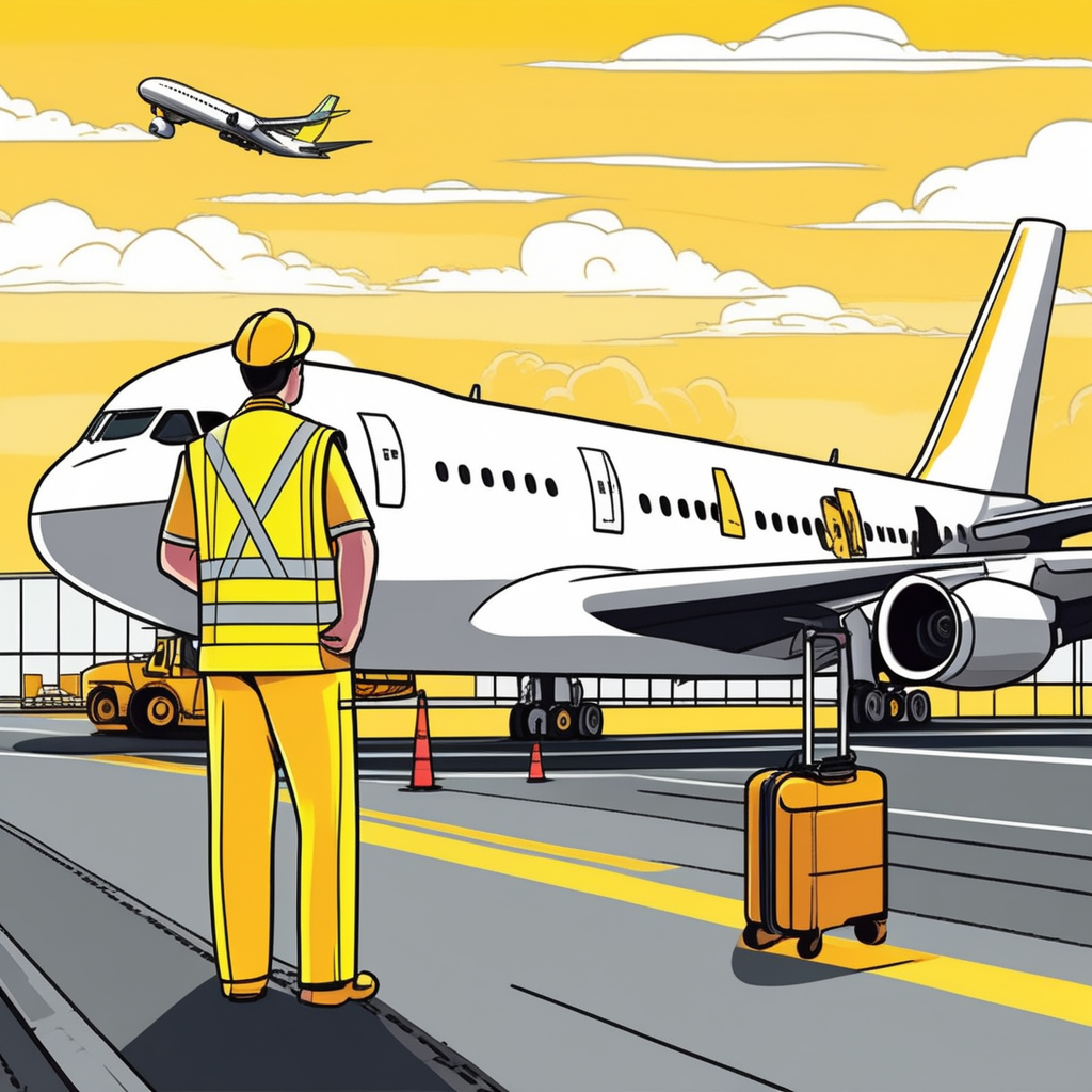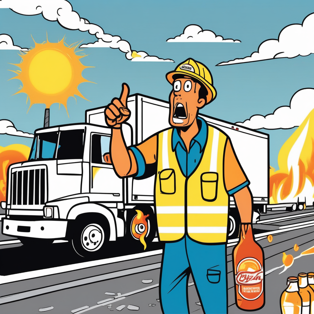 Airport worker shouting 'Hot! Beer!' on the burning tarmac runway