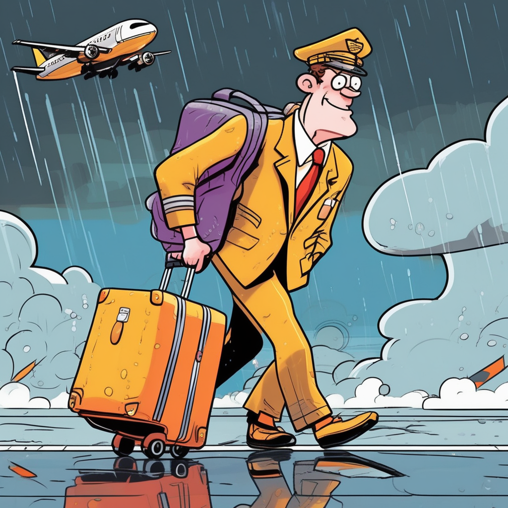 짐을 끌고 활주로를 건너다가, 다시 뒤돌아서는 조종사