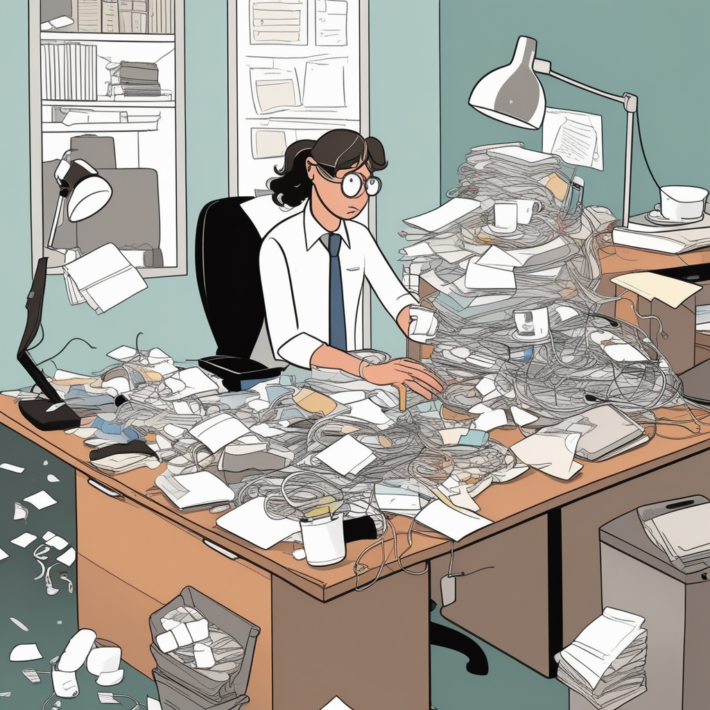 Definition: Lacking systematic arrangement or structure; characterized by confusion and inefficient management of tasks or materials.