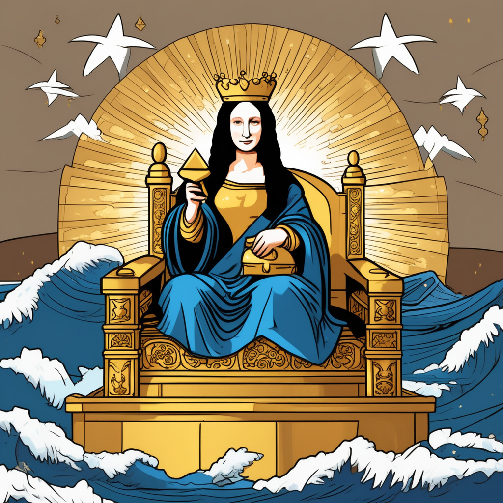 모나리자가 아크(방주) 위에서 왕관을 쓰고 군주 노릇! 신비로운 미소로 백성들을 다스린다!