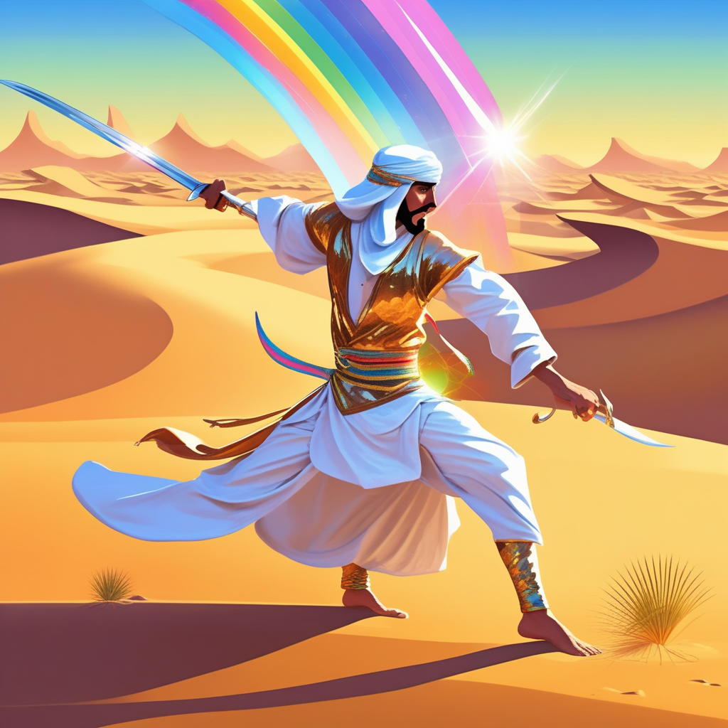 Shimi (sparkle) and turn with the curved blade! The desert warrior spins around!