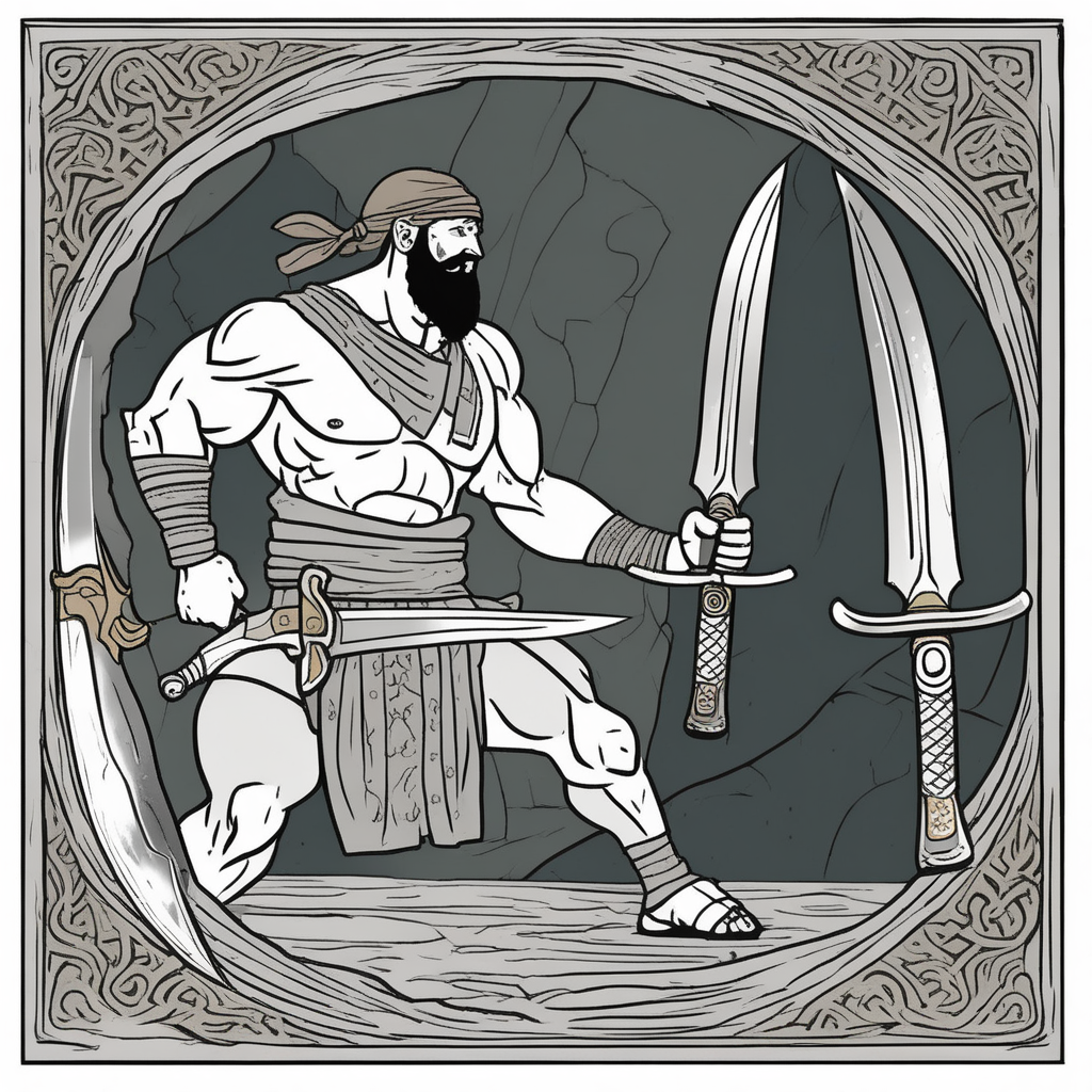 "The genie appeared with a golden scimitar tucked in his belt."