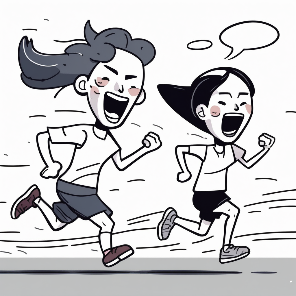 Keep! Up! With! - desperately trying to catch up with a friend ahead!