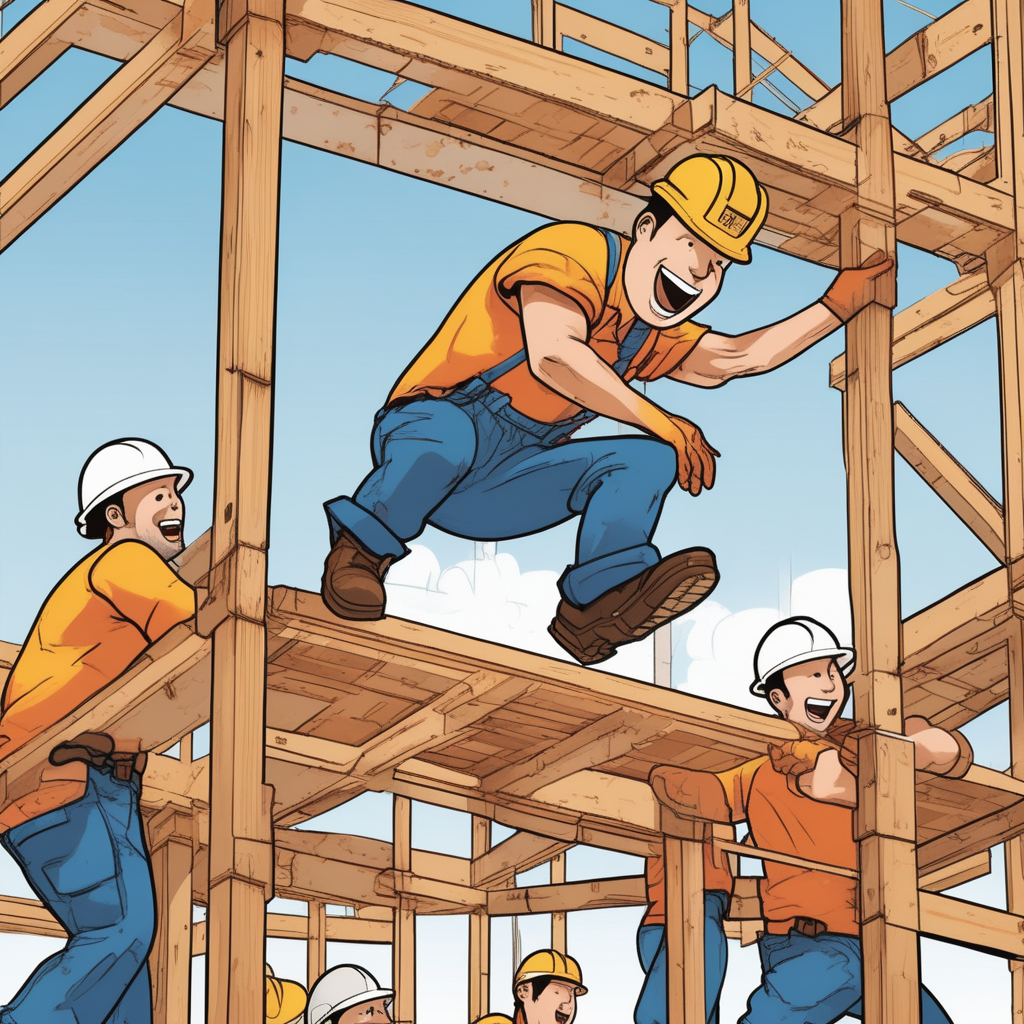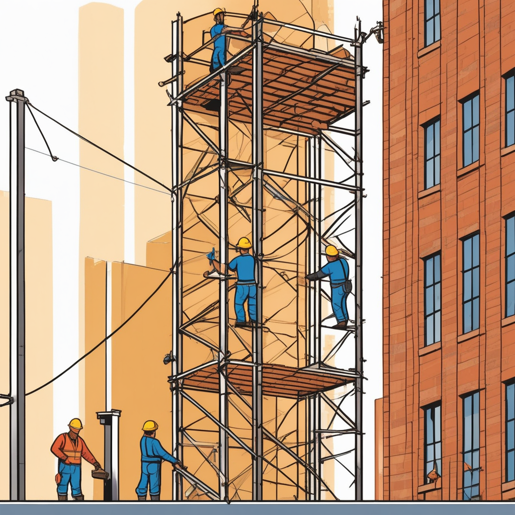'스캐폴딩'을 '스케치하고 폴짝폴짝 뛰는' 상황으로 연상해보세요. 건물을 스케치하며 설계한 후, 작업자들이 비계 위에서 폴짝폴짝 뛰어다니며 공사하는 모습을 떠올리면 됩니다.