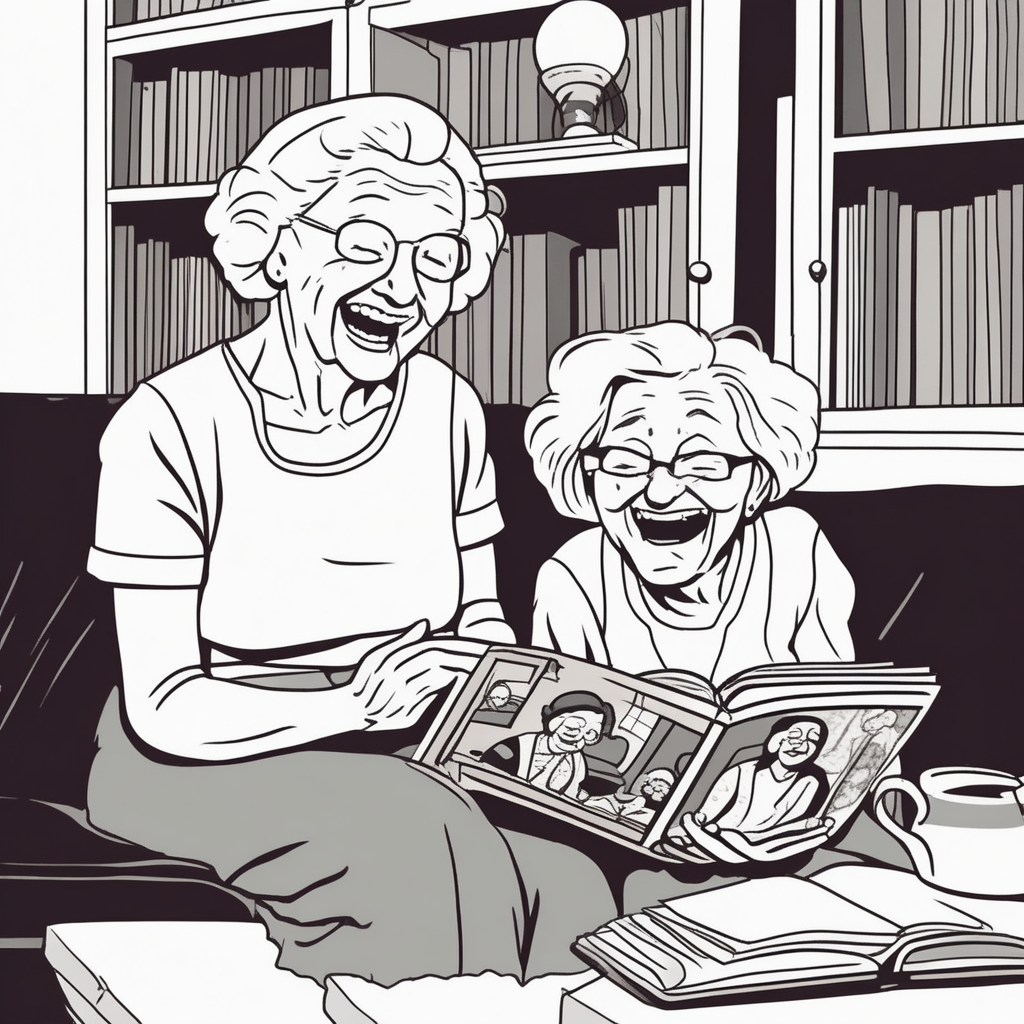 "The mirthful party guests couldn't stop laughing at the comedian's jokes."