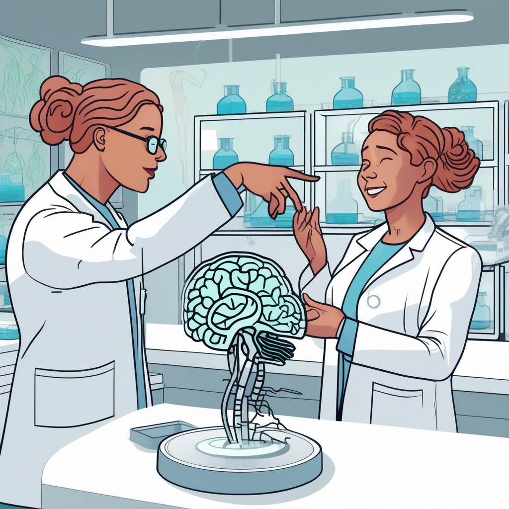 '뉴로사이언스'를 '뉴로(새로운 로봇) + 사이언스(과학)'로 연상해보세요. 새로운 로봇이 뇌과학을 연구하는 모습을 상상하면, 첨단 기술로 뇌와 신경을 분석하는 신경과학의 이미지가 떠오릅니다.